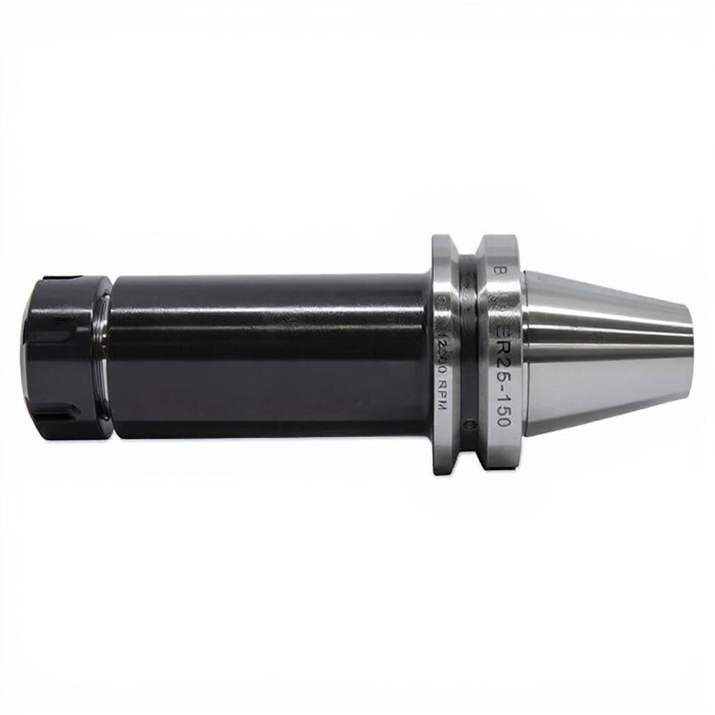 Цанговый патрон BT40-ER25-150 с конусом MAS403 BT предназначен для установки на фрезерные станки. Он оснащён оправкой под цанги типа ER25 согласно стандарту DIN 6499 и обеспечивает надёжную фиксацию режущего инструмента с цилиндрическим хвостовиком — таких как фрезы, свёрла и другие аналогичные инструменты. Длина вылета от торца шпинделя составляет 150 мм, а точность центровки (радиальное биение) не превышает 0,003 мм.